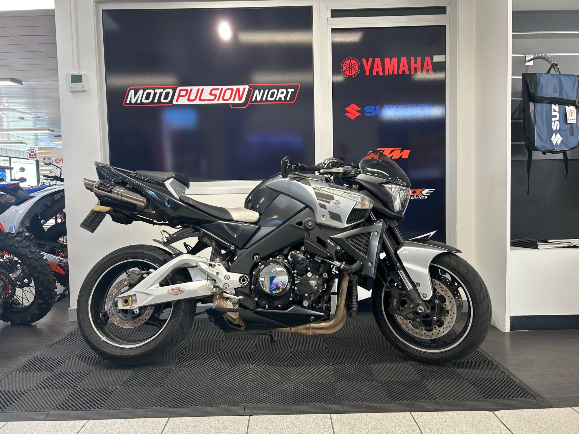 Equipée : double échappement Yoshimura, rétroviseurs embout de guidon.